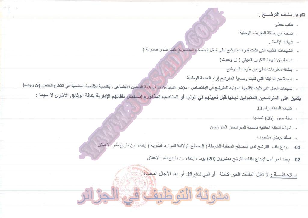 اخر اجل لايداع الملفات 15 يوم من تاريخ نشر الاعلان