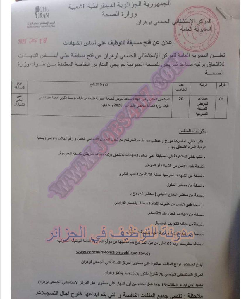 مساعد تمريض للصحة العمومية 20 مسابقة على اساس الشهادة