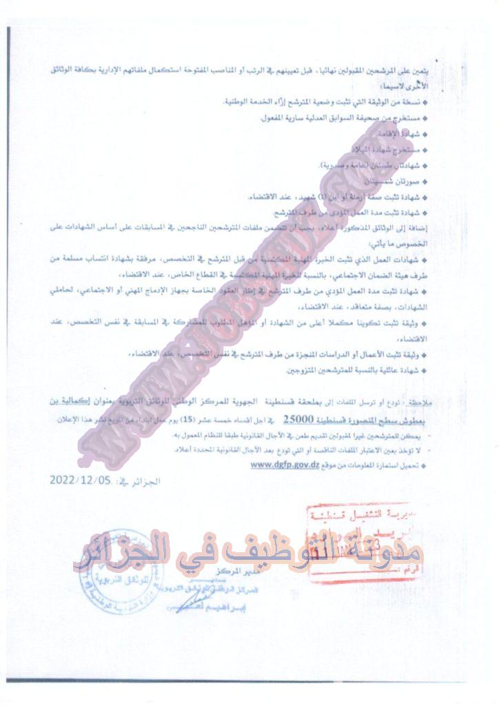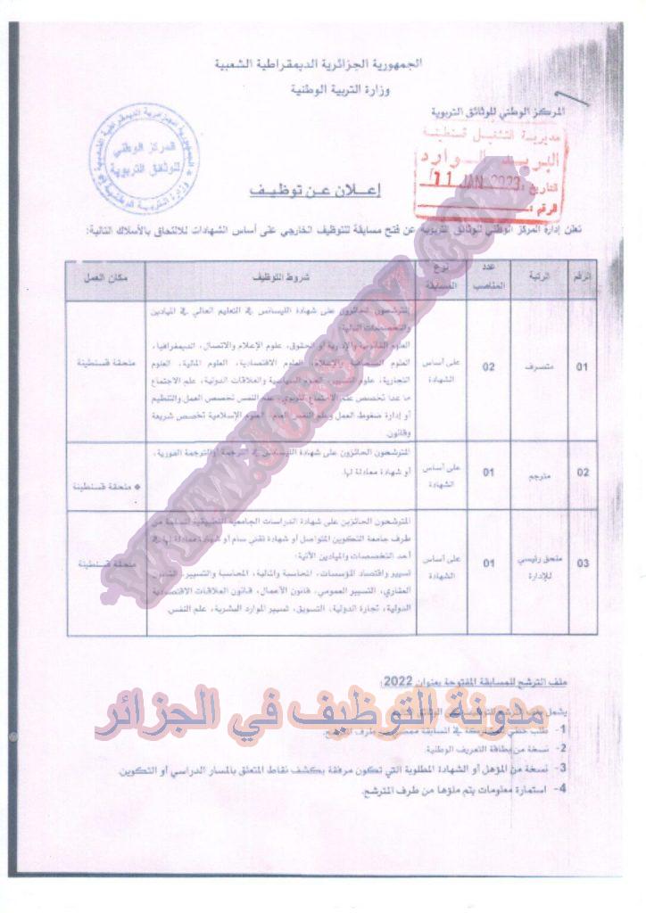 تعلن المركز الجهوي للثوتيق التربوي بقسنطينة cndp عن فتح مسابقة توظيف على اساس الشهادة في الرتب المبينة ادناه