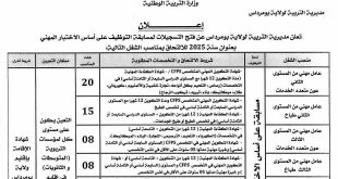 نمط التوظيف: مسابقة على اساس الاختبار المهني