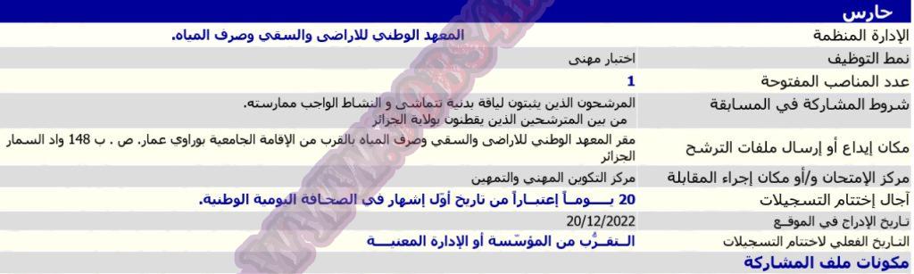 تعلن المعهد الوطني للاراضى والسقي وصرف المياه عن فتح مسابقة توظيف في الرتب المبينة ادناه