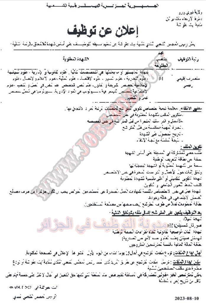يعلن رئيس المجلس الشعبي البلدي لبلدية أيت قواشة عن فتح مسابقة توظيف على اساس الشهادة في الرتب المبينة ادناه