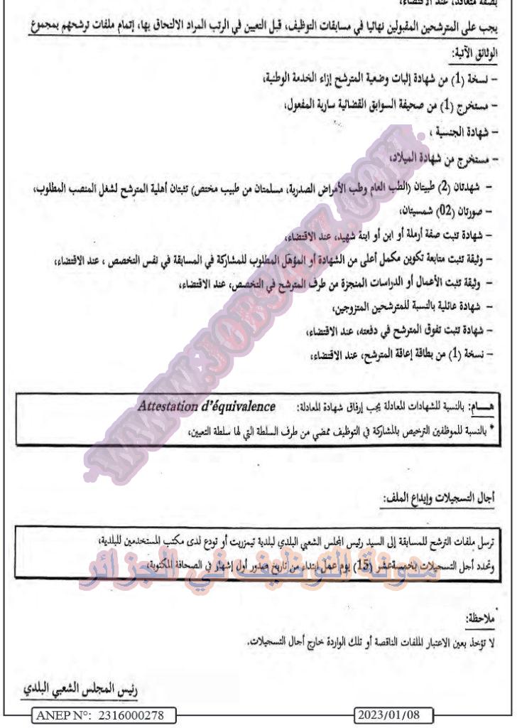 اخر اجل لايداع الملفات بعد 15 يوم من تاريخ نشر الاعلان
