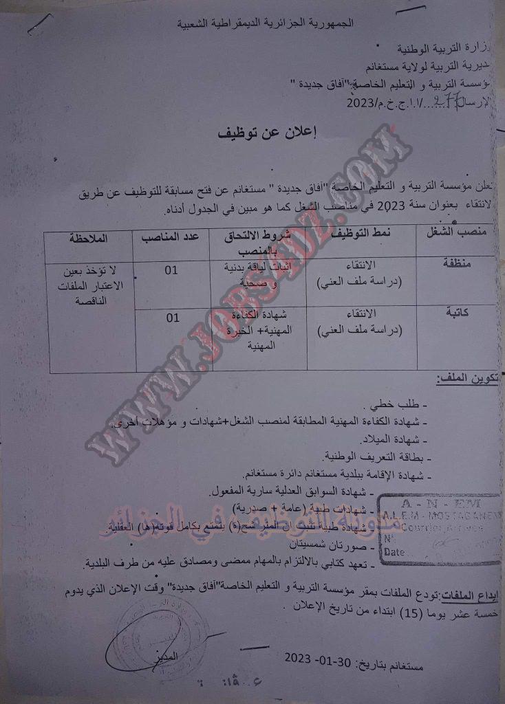 مؤسسة التربية والتعليم الخاصة المعتمدة أفاق الجديدة مستغانم