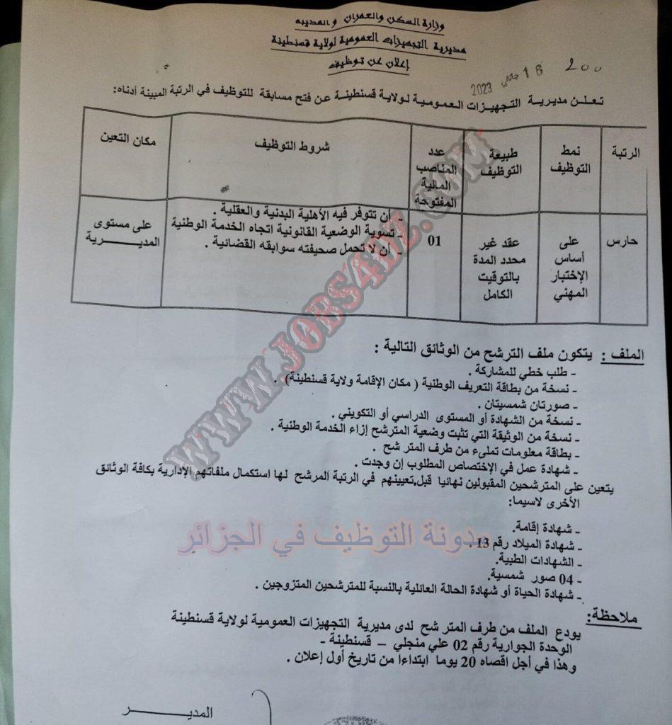تعلن مديرية التجهيزات العمومية لولاية قسنطينة عن فتح مسابقة توظيف على اساس الاختبار المهني في الرتب المبينة ادناه