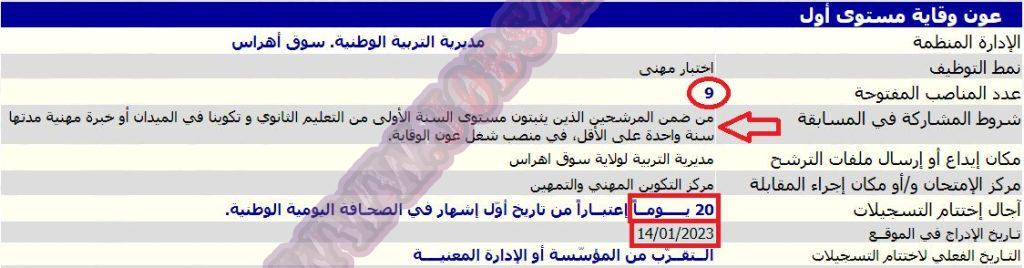 تاريخ نشر الاعلان في موقع الوظيف العمومي 14 جانفي 2023