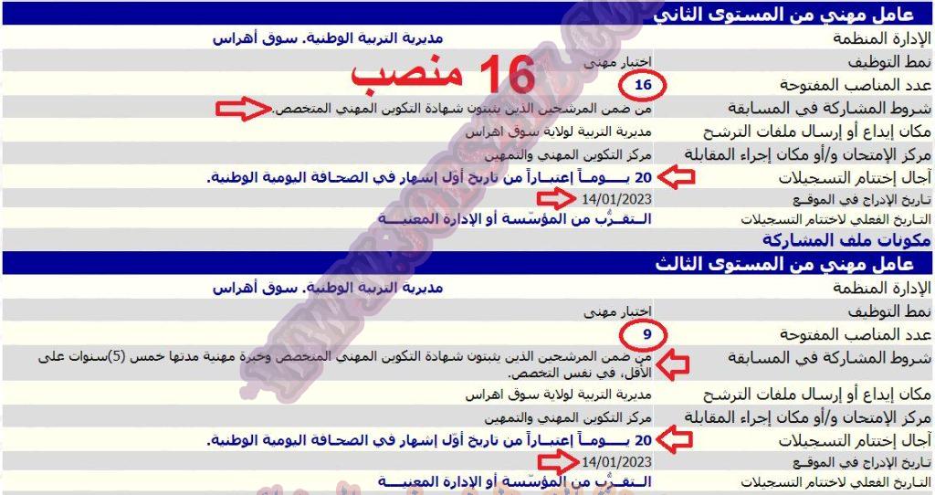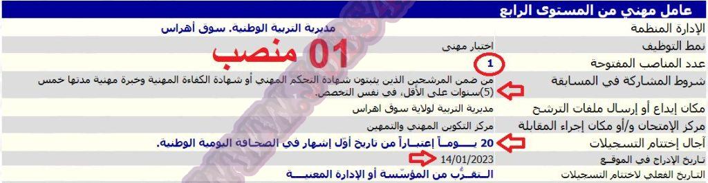 تعلن مديرية التربية سوق أهراس عن فتح مسابقة توظيف على اساس الاختبار المهني في الرتب المبينة ادناه