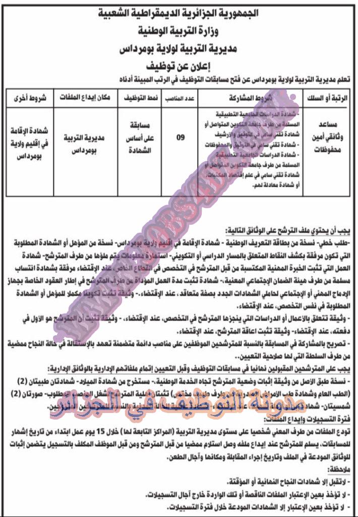 اعلان عن توظيف بمديرية التربية لولاية بومرداس