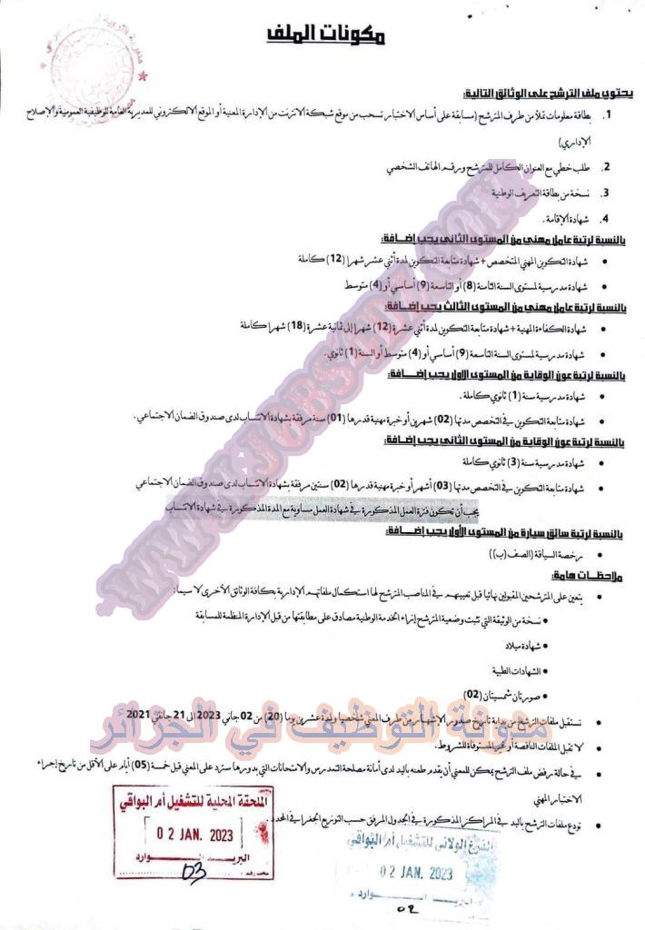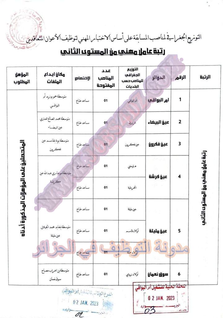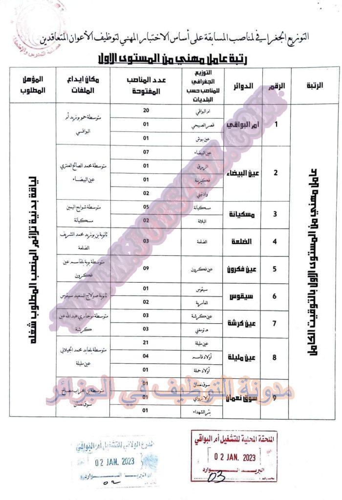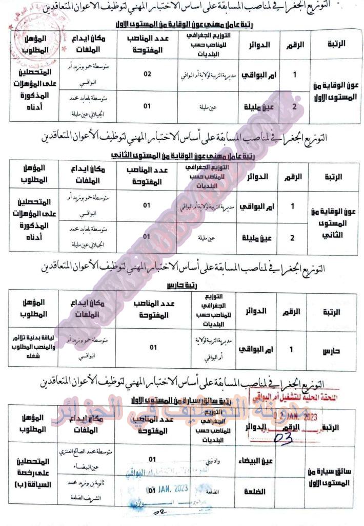 تعلن مديرية التربية لولاية ام البواقي عن فتح مسابقة توظيف على اساس الاختبار المهني في الرتب المبينة ادناه