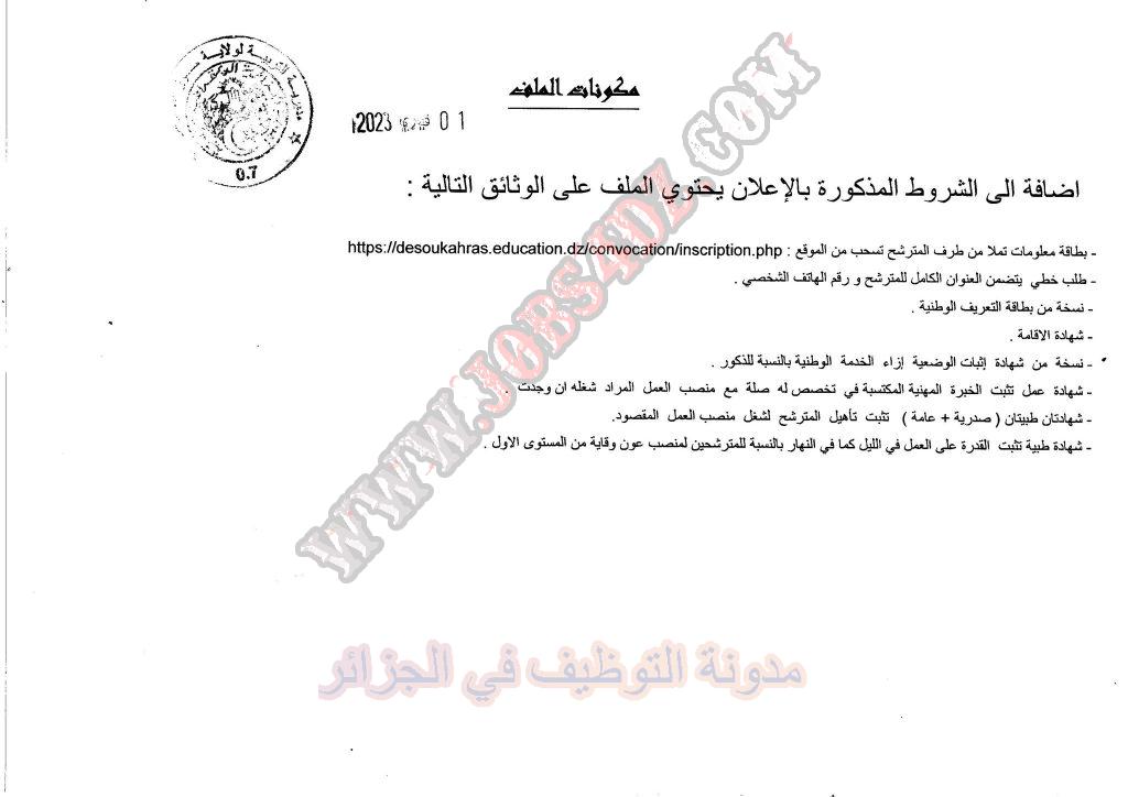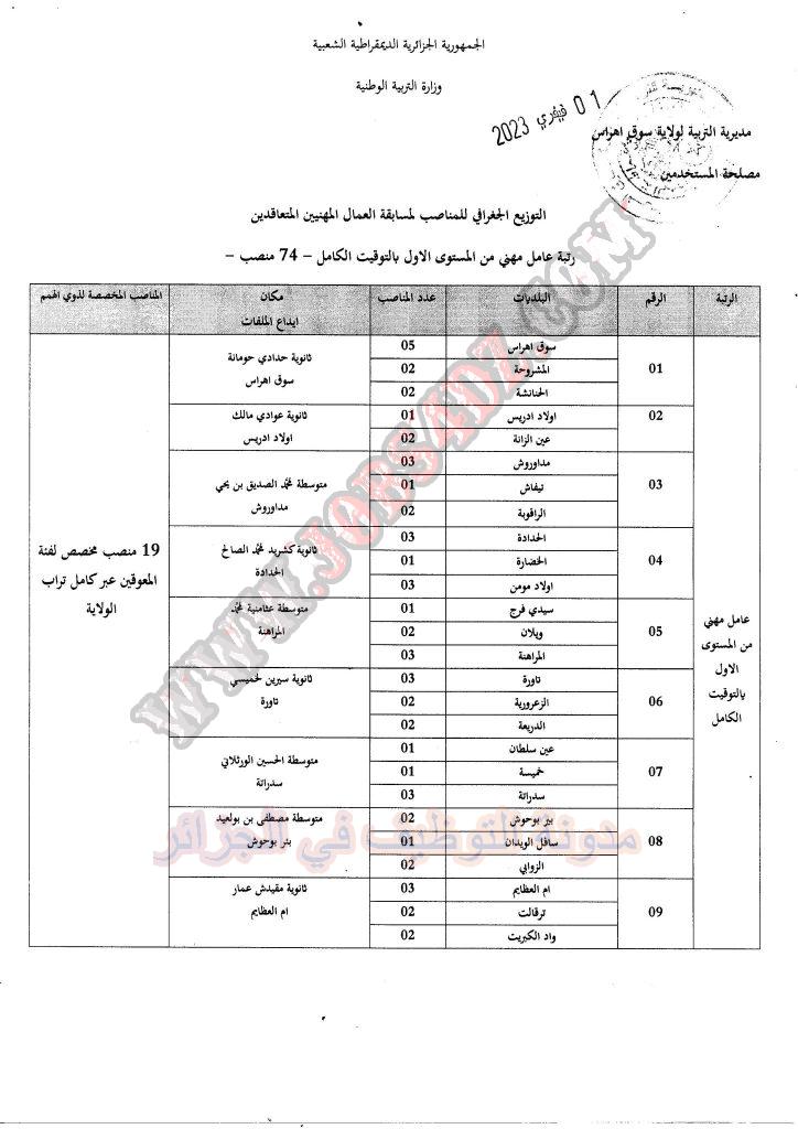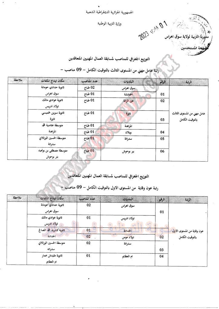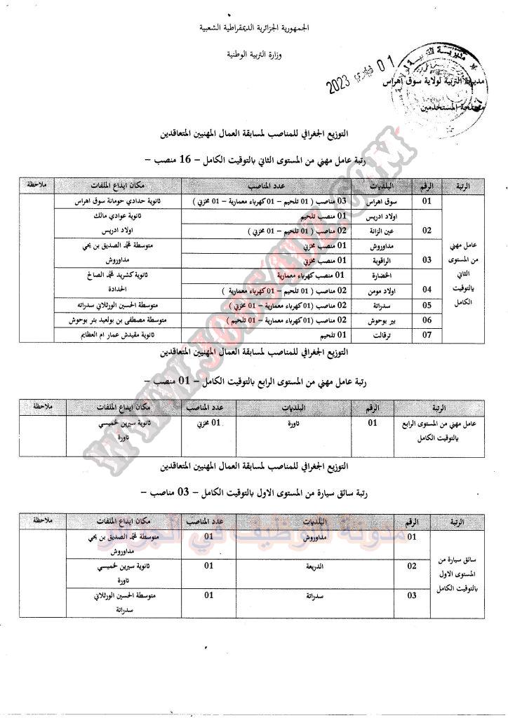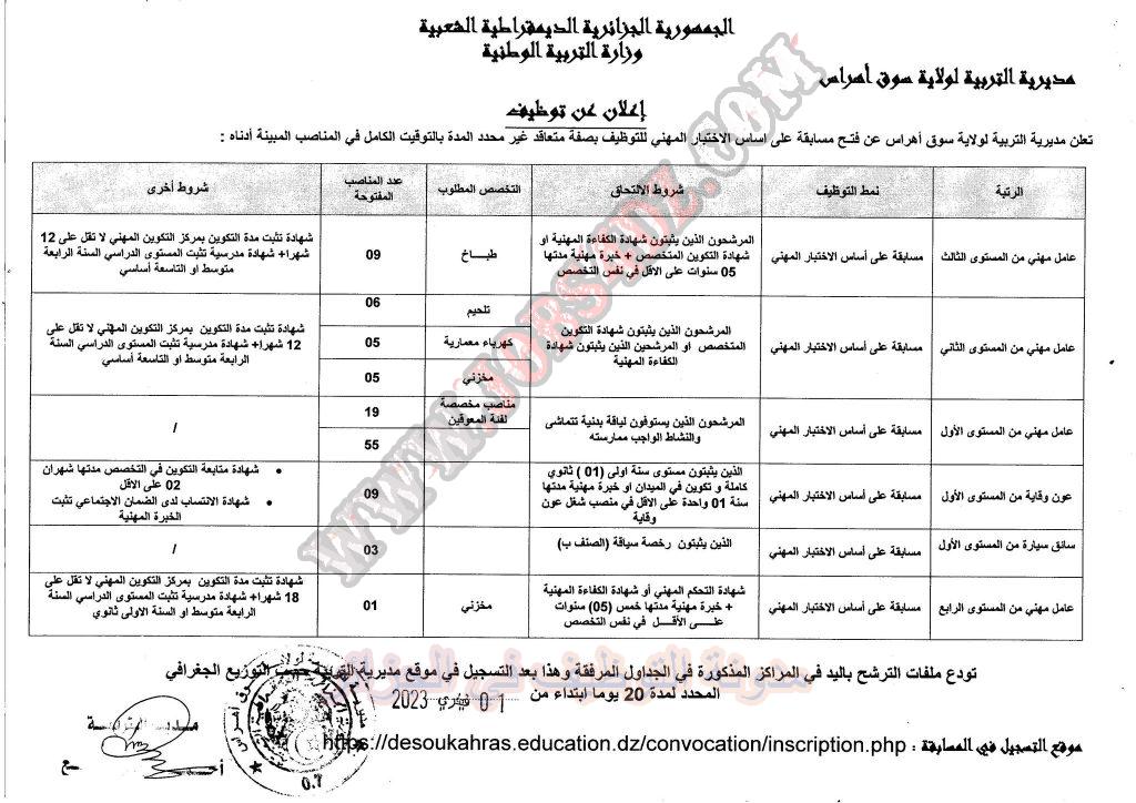 تعلن مديرية التربية لولاية سوق اهراس عن فتح مسابقة توظيف على اساس الاختبار المهني في الرتب المبينة ادناه