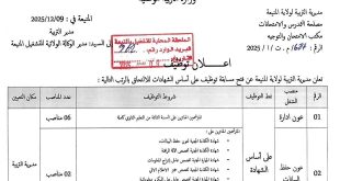 يعلن مديرية الشباب والرياضة فتح مسابقة توظيف في الرتب المبينة ادناه