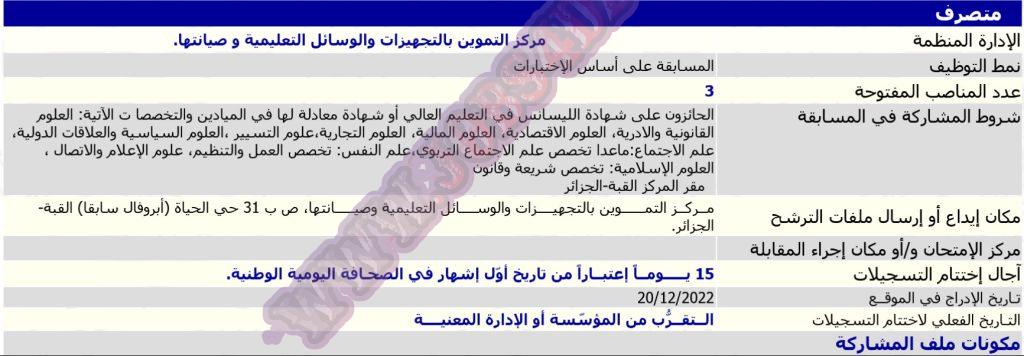 يعلن مركز التموين بالتجهيزات والوسائل التعليمية و صيانتها عن فتح مسابقة توظيف في الرتب المبينة ادناه