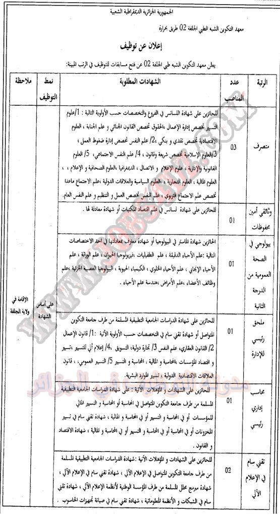 علن معهد التكوين الشبه الطبي 2 ولاية الجلفة عن فتح مسابقة توظيف على اساس الشهادة في الرتب المبينة ادناه