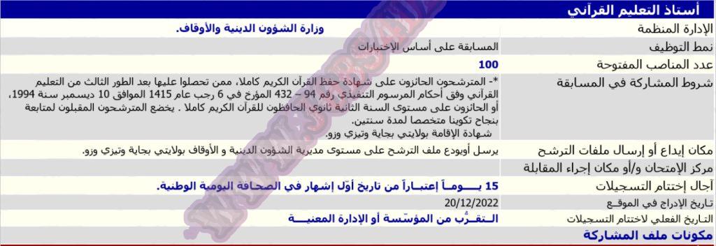 تعلن وزارة الشؤون الدينية والأوقاف عن فتح مسابقة توظيف في الرتب المبينة ادناه