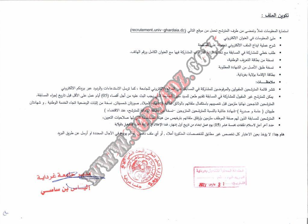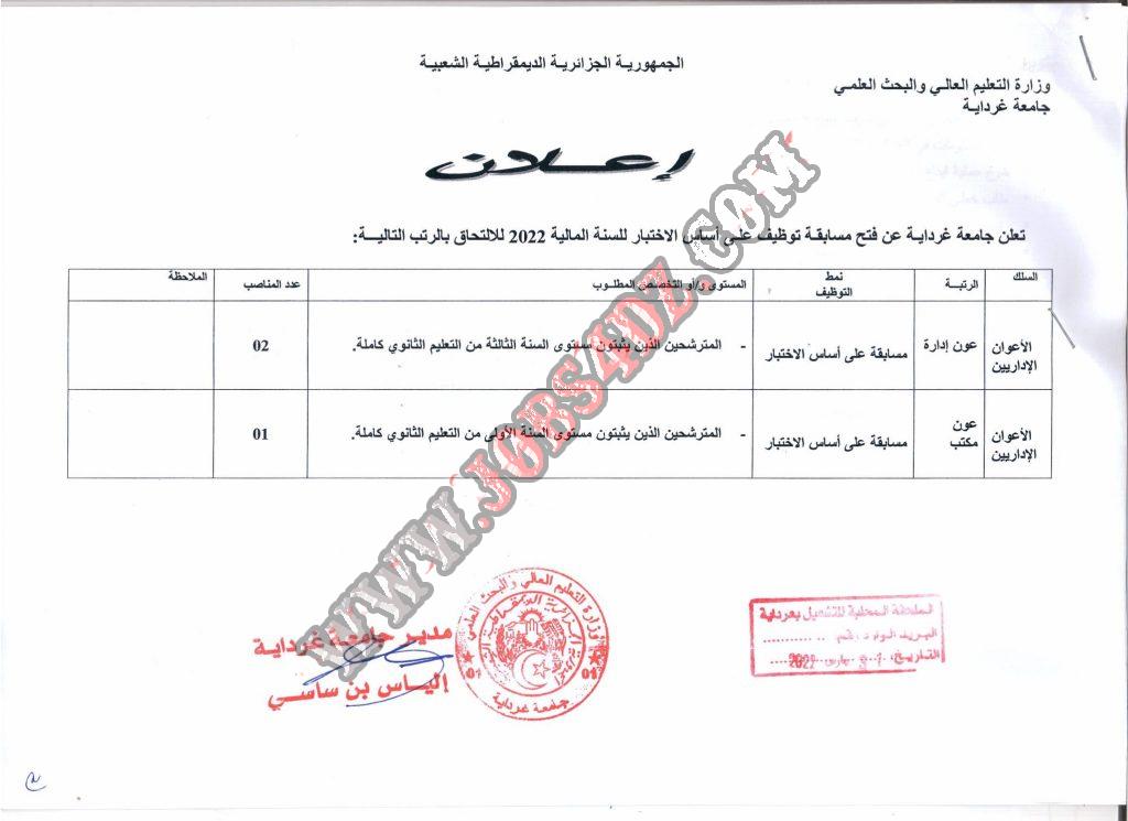 تعلن جامعة عرداية عن فتح مسابقة توظيف على اساس الاختبار للسنة المالية 2022 في المناصب التالية