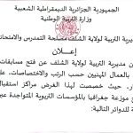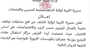 - مديرية التربية تفتح مسابقة توظيف إداريين وأعوان مهنيين 182 منصب