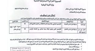وزارة التربية الوطنية مديرية التربية لولاية الأغواط مكتب الامتحانات والتوجيه ads إعــــــلان تعلن مديرية التربية لولاية الأغواط عن فتح مسابقة على أساس الاختبار المهني لتوظيف الأعوان المتعاقدين لشغل منصب عامل مهني من المستوى الثالث بالتوقيت الكامل بعقد غير محدد المدة. فتح توظيف بالمؤسسة العمومية …