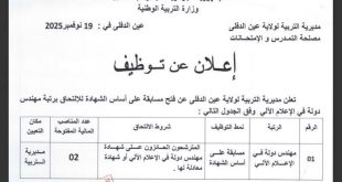 أكمل القراءة »اعلان عن توظيف في عدة مناصي ادارية بمديرية التربية للجزائر وسط
