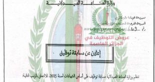 أكمل القراءة »مديرية الصناعة لولاية الجزائر توظف:
