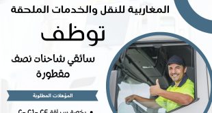 المغاربية للنقل والخدمات الملحقة ads توظيف سائقي شاحنات نصف مقطورة المؤهلات المطلوبة رخصة سياقة C – C1 – CE سنتين خبرة المزايا التكوين في شهادة الكفاءة لرخصة السياقة يرجى ارسال السيرة الذاتية إلى العنوان الآتي: [email protected] إعلان عن توظيف داخلي بالمؤسسة العمومية الجزائرية للمياه …