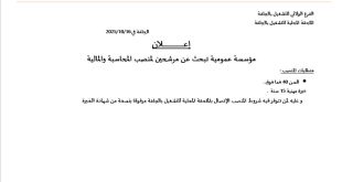 أكمل القراءة »مؤسسة عمومية توظف من اجل شغل منصب المحاسبة والمالية