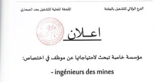 أكمل القراءة »مؤسسة عمومية تبحث عن مرشحين لشغل منصب Conducteur de bulldozer
