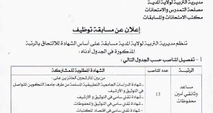 أكمل القراءة »إعلان عن فتح مسابقة توظيف بمديرية التربية