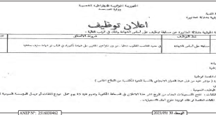 أكمل القراءة »إعلان عن مسابقة توظيف الأطباء العامين في الصحة العمومية