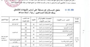 أكمل القراءة »إعلان عن مسابقة على أساس الشهادات للالتحاق بسلك الأساتذة المساعدين بجامعة عبد الرحمان ميرة – بجاية (30 منصب)