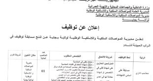 أكمل القراءة »إعلان عن مسابقة توظيف بمديرية المواصلات السلكية واللاسلكية