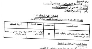 أكمل القراءة »إعلان عن توظيف بالمركز المتخصص في الحماية ببيشي ببجاية