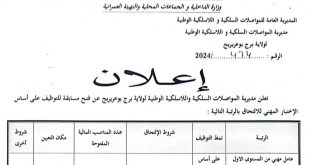 اعلانات توظيف الولايات المعنية: الجزائر العاصمة، بجاية، بومرداس، مستغانم، تبسة، غليزان، برج بوعريريج، ام البواقي، معسكر، سوق أهراس، سكيكدة، النعامة، البيض، المغير، الجلفة، جيجل، تمنراست يرجى من المهتمين التقرب من الادارة المعنية بالعرض او الملحقة المحلية للتشغيل حسب طبيعة الاعلان ads إعلان عن توظيف …