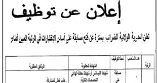 الجمهورية الجزائرية الديمقراطية الشعبية وزارة الصحة مديرية الصحة والسكان لولاية بسكرة المؤسسة العمومية للصحة الجوارية سيدي عقبة ads إعلان عن توظيف يعلن مدير المؤسسة العمومية للصحة الجوارية سيدي عقبة عن فتح مسابقة التوظيف في الرتب المبينة أدناه: إعلان عن توظيف بالمجلس الأعلى للشباب: الجزائر …