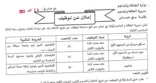 أكمل القراءة »اعلان عن توظيف بمديرية التربية لولاية بني عباس