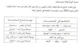 اعلانات توظيف الولايات المعنية: الجزائر العاصمة، البليدة، تيبازة، بومرداس، قسنطينة، جيجل، برج بوعريريج، بجاية، البيض، ورقلة، المسيلة، بسكرة، تيسمسيلت، تلمسان، المنيعة، سكيكدة، مستغانم، الشلف، المدية، ايليزي يرجى من المهتمين التقرب من الادارة المعنية بالعرض او الملحقة المحلية للتشغيل حسب طبيعة الاعلان ads المعهد التقني …