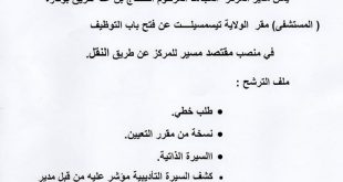 يعلن مدير المركز المجاهد المرحوم الحاج بن علة طريق بوقارة مقر الولاية تيسمسيلت عن فتح باب التوظيف في منصب مقتصد مسير للمركز عن طريق النقل ads ملف الترشح في الصوة المرفقة