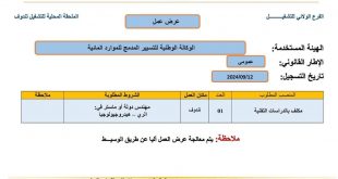 الجمهورية الجزائرية الديمقراطية الشعبية وزارة العمل والتشغيل والضمان الاجتماعي الوكالة الوطنية للتشغيل عرض عمل ads الفرع الولائي للتشغيل بتندوف الملحقة المحلية للتشغيل بتندوف الهيئة المستخدمة: عمومي الإطار القانوني: عمومي تاريخ التسجيل: 2024/09/12 المنصب المطلوبالشروط المطلوبةمكان العملالعددالملاحظاتمكلف بالدراسات التقنيةمهندس دولة أو ماستر في: الري – …