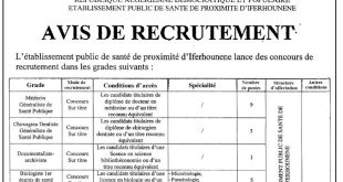 أكمل القراءة »اعلان توظيف بالمؤسسة العمومية للصحة الجوارية إفرحونان ولاية تيزي وزو