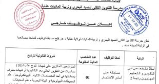 أكمل القراءة »إعلان عن توظيف بالمدرسة التقنية للتكوين والتدريب البحريين
