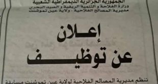 أكمل القراءة »إعلان عن توظيف بمديرية المصالح الفلاحية لولاية عين تموشنت