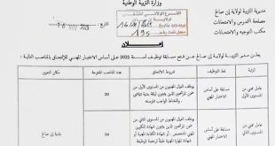 وزارة التربية الوطنية مديرية التربية لولاية إن صالح مصلحة المدرس والامتحانات مكتب التوجيه والامتحانات ads إعـــلان يعلن مدير التربية لولاية إن صالح عن فتح مسابقة توظيف لسنة 2025 على أساس الاختبار المهني للإلتحاق بالمناصب التالية: سوناطراك تفتح باب التوظيف… مسابقات توظيف في عدّة رتب …
