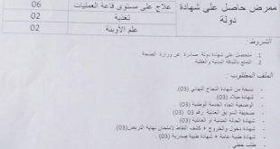 يعلن مدير المستشفى المختلط لعمي موسى يعلن عن توظيف مباشر في رتبة ممرض حاصل على شهادة دولة حسب الاتي ads الرتبةتخصصعدد المناصب ممرض حاصل على شهادة دولةعلاجات عامة علاج على مستوى قاعة العمليات تغذية علم الاوبئة06060202 الشروط متحصل على شهادة دولة صادرة عن وزارة …