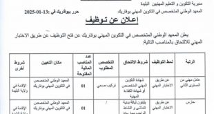 أكمل القراءة »إعلان عن توظيف أساتذة في مختلف النخصصات 2025