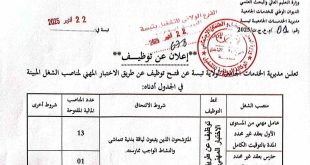 أكمل القراءة »اعلان عن مسابقة توظيف على اساس الشهادة بمديرية التربية