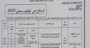 أكمل القراءة »إعلان عن توظيف بعنوان 2025 في جامعة قسنطينة 3 صالح بوبنيدر