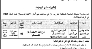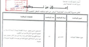 أكمل القراءة »اعلان عن مسابقة توظيف بمديرية الخدمات الجامعية لولاية البيض