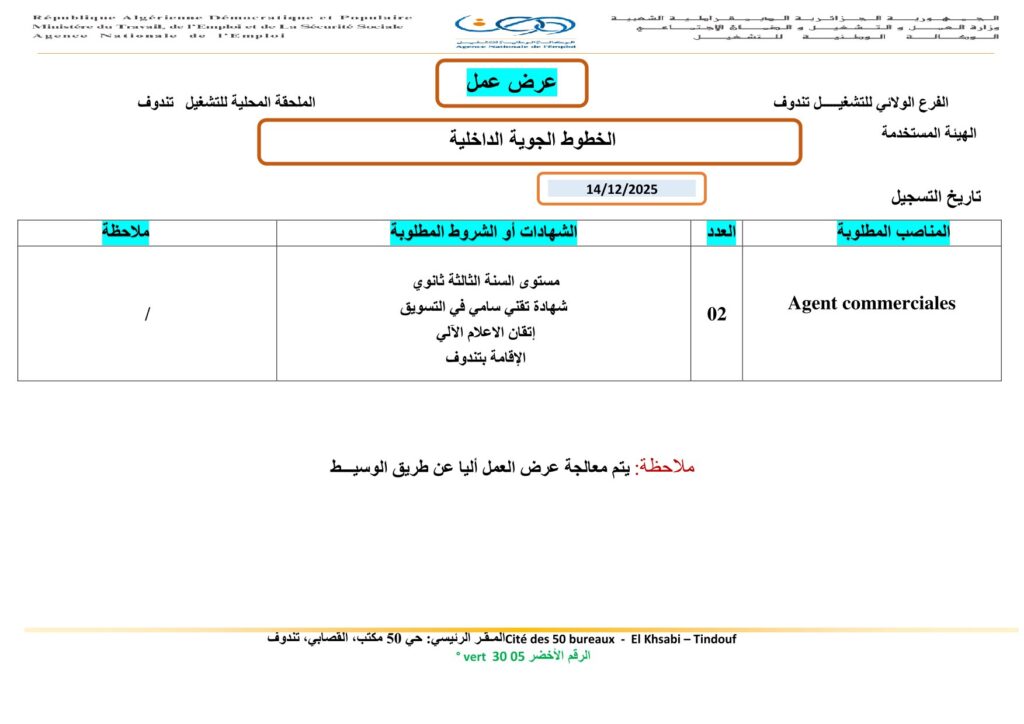 - المديرية العامة لوكالة تسيير الشحن الجزائر AGEFAL توظف 450 منصب موزعة عبر التراب الوطني