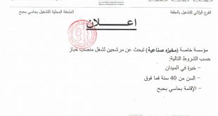 اعلانات توظيف الولايات المعنية: جيجل، سطيف، قسنطينة، الشلف، الوادي، المسيلة، تمنراست، ورقلة، تندوف، باتنة، المنيعة، مستغانم وإليزي يرجى من المهتمين التقرب من الادارة المعنية بالعرض او الملحقة المحلية للتشغيل حسب طبيعة الاعلان ads مديرية الصيد البحري وتربية المائيات لولاية جيجل إعلان عن توظيف يعلن …