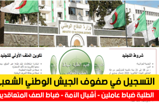 موقع وزارة الدفاع الوطني مفتوح للتسجيل فيما يخص ضباط الصف ورجال الصف لمن يريد الإلتحاق بصفوف الجيش الوطني الشعبي ads – ضباط الصف : https://preinscription.mdn.dz/soff/… -رجال الصف : https://preinscription.mdn.dz/hdr/…