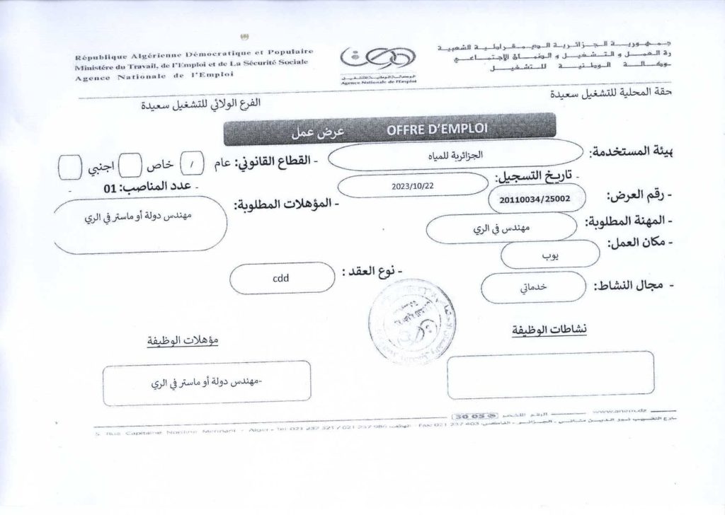 - المؤسسة العمومية الجزائرية للمياه توظف في هذه الولايات: